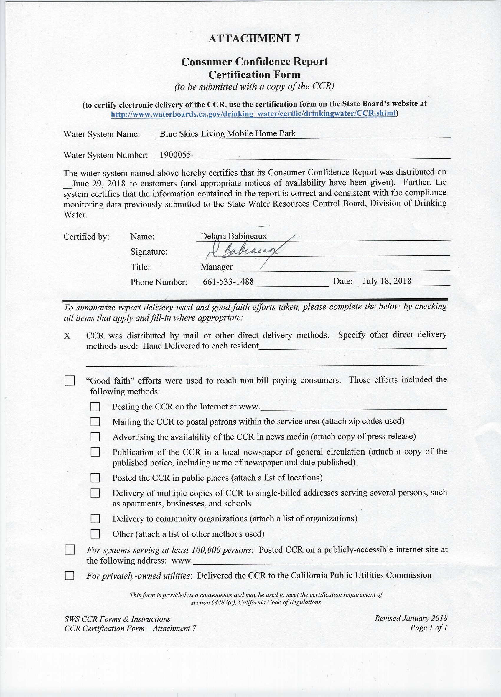 Water System Name : BLUE SKIES TRAILOR PARK State Type : C