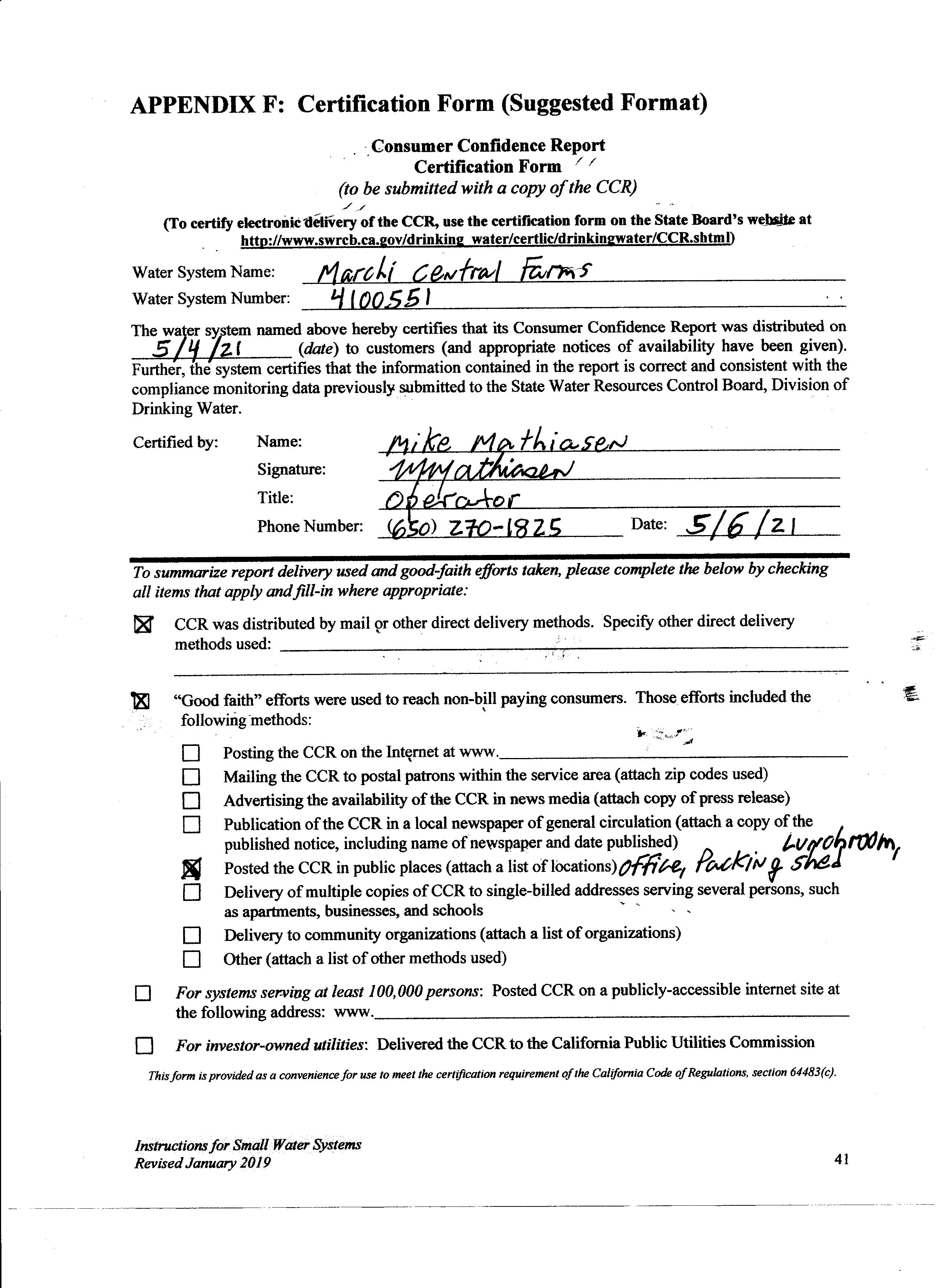 | Water System No. : |