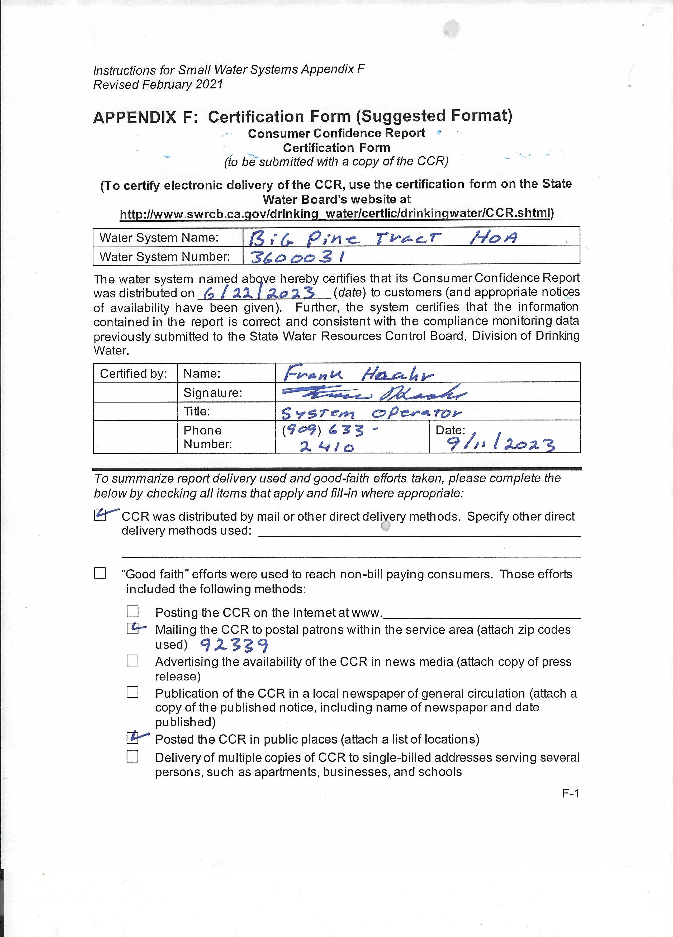 Water System Name : BIG PINE TRACT State Type : C