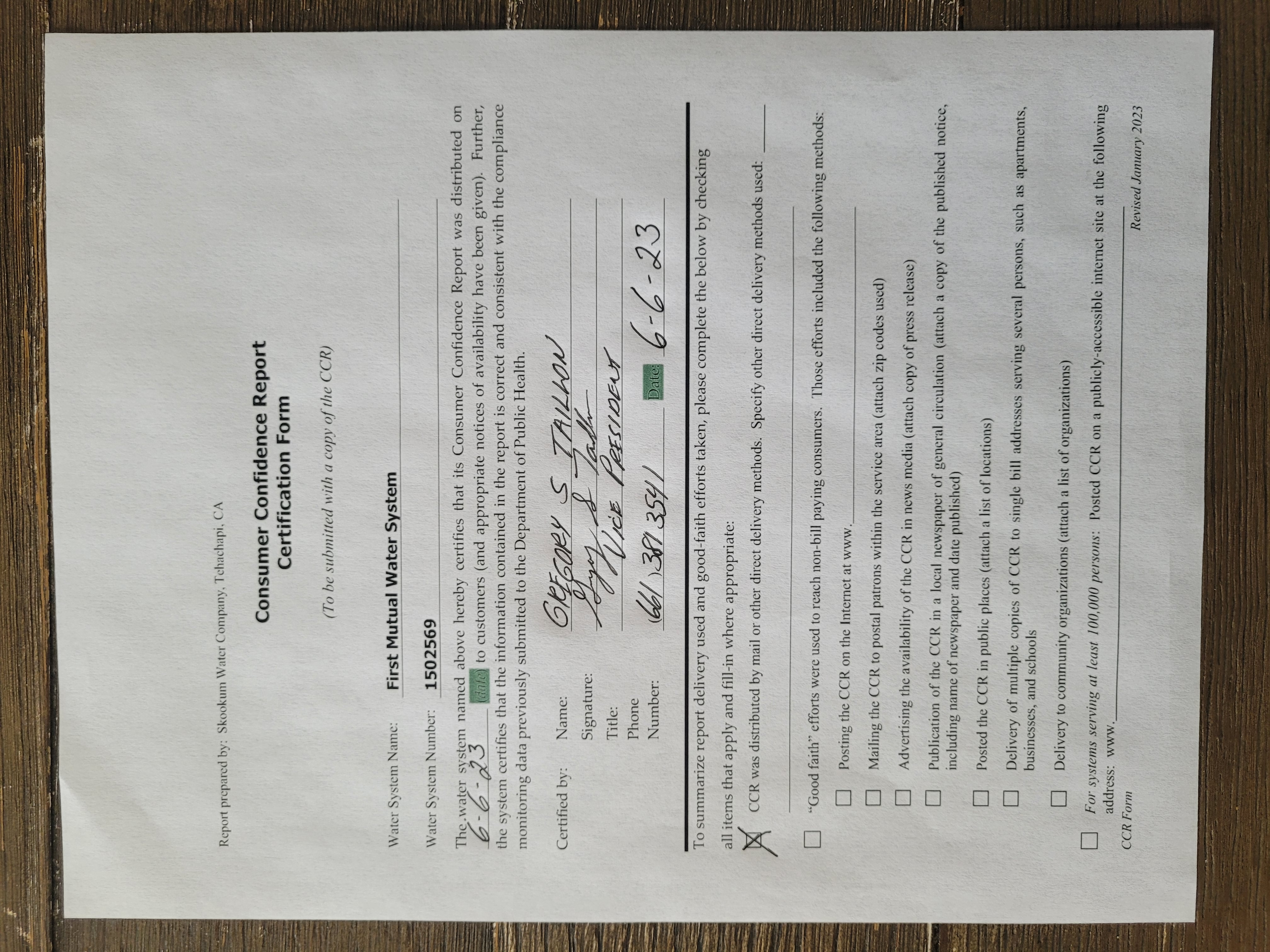 Water System Name : FIRST MUTUAL WATER SYSTEM State Type : C