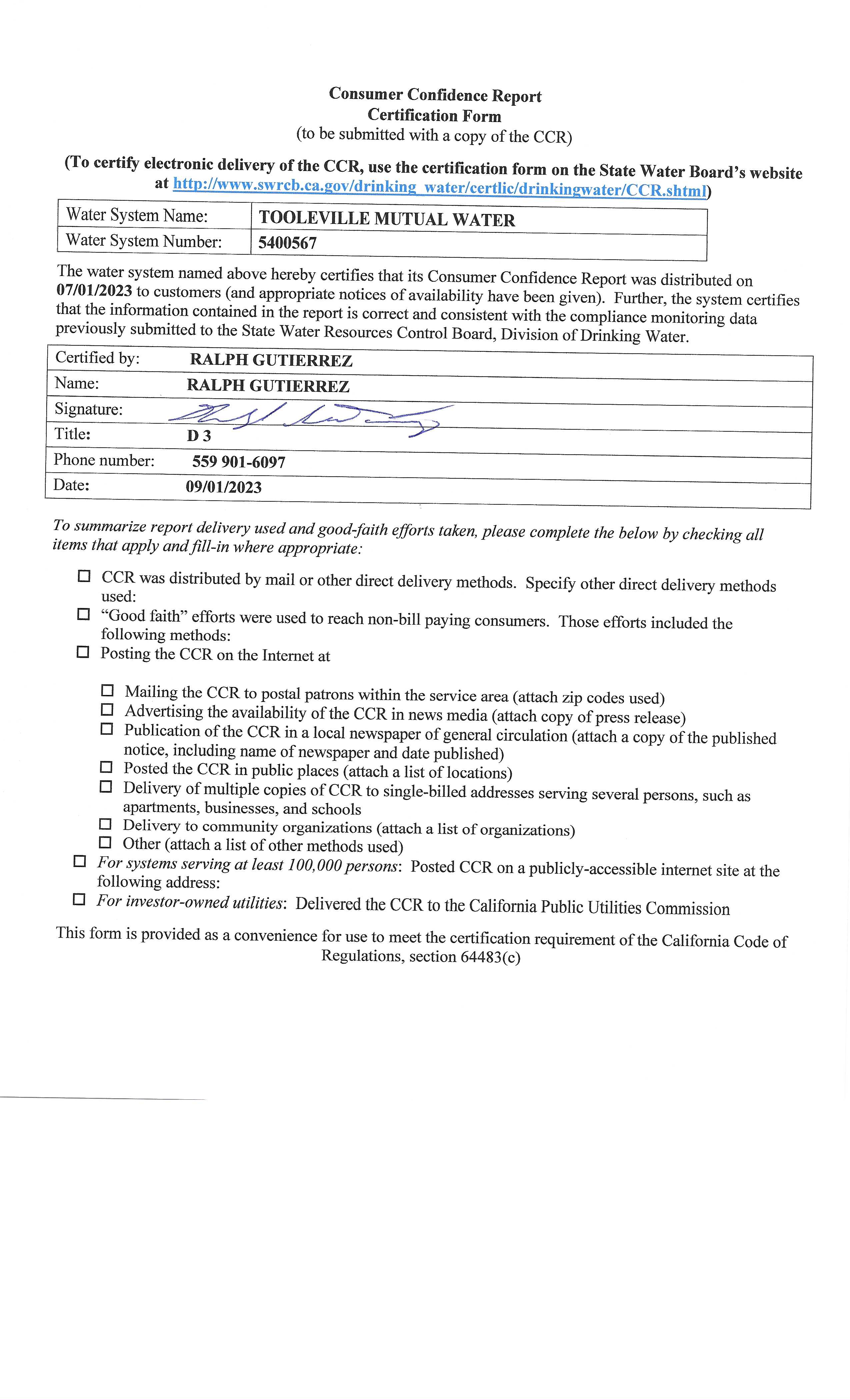 TOOLEVILLE MUTUAL NON PROFIT WATER ASSN |