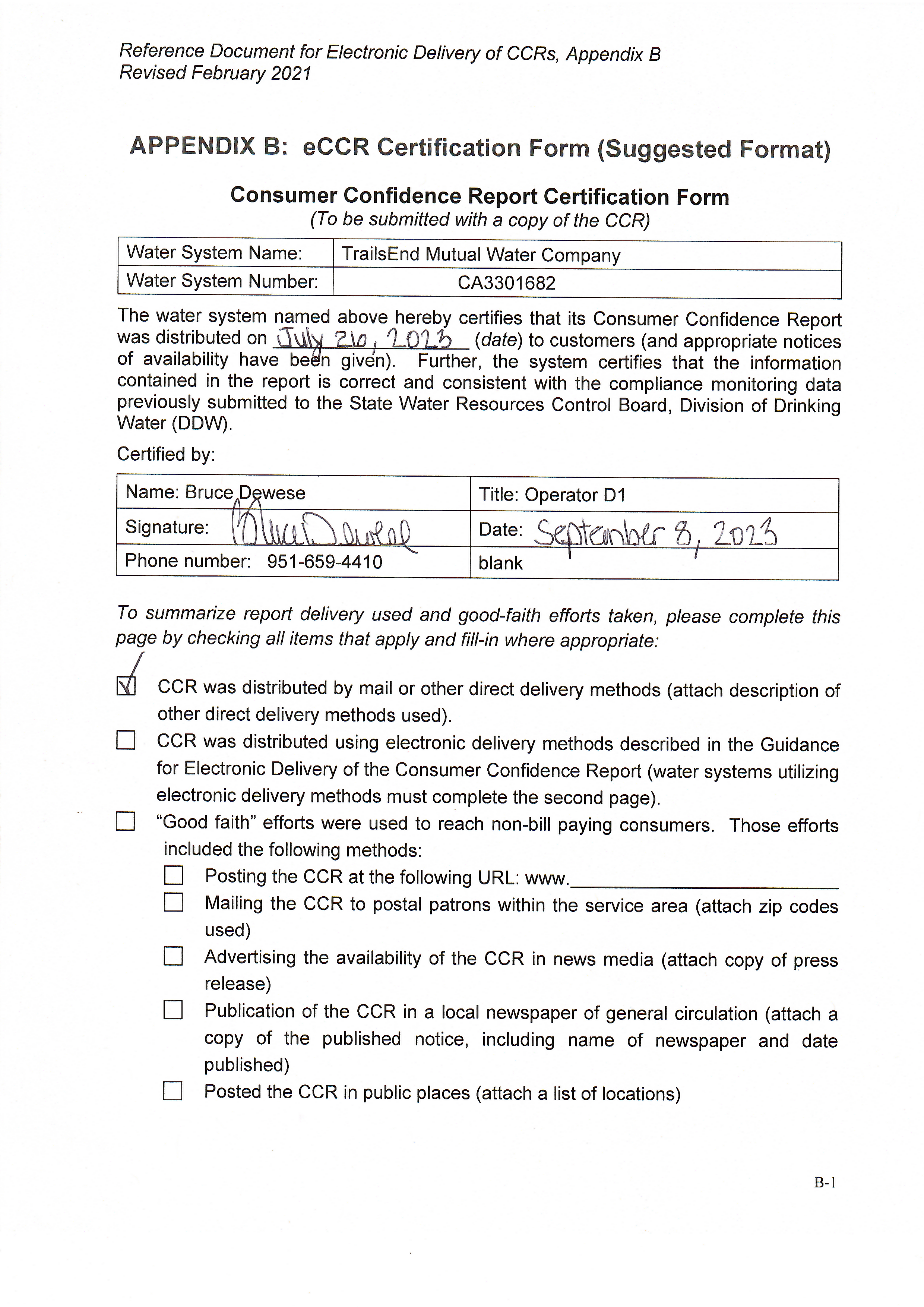 Water System Name : TRAILS END MUTUAL WATER COMPANY State Type : C