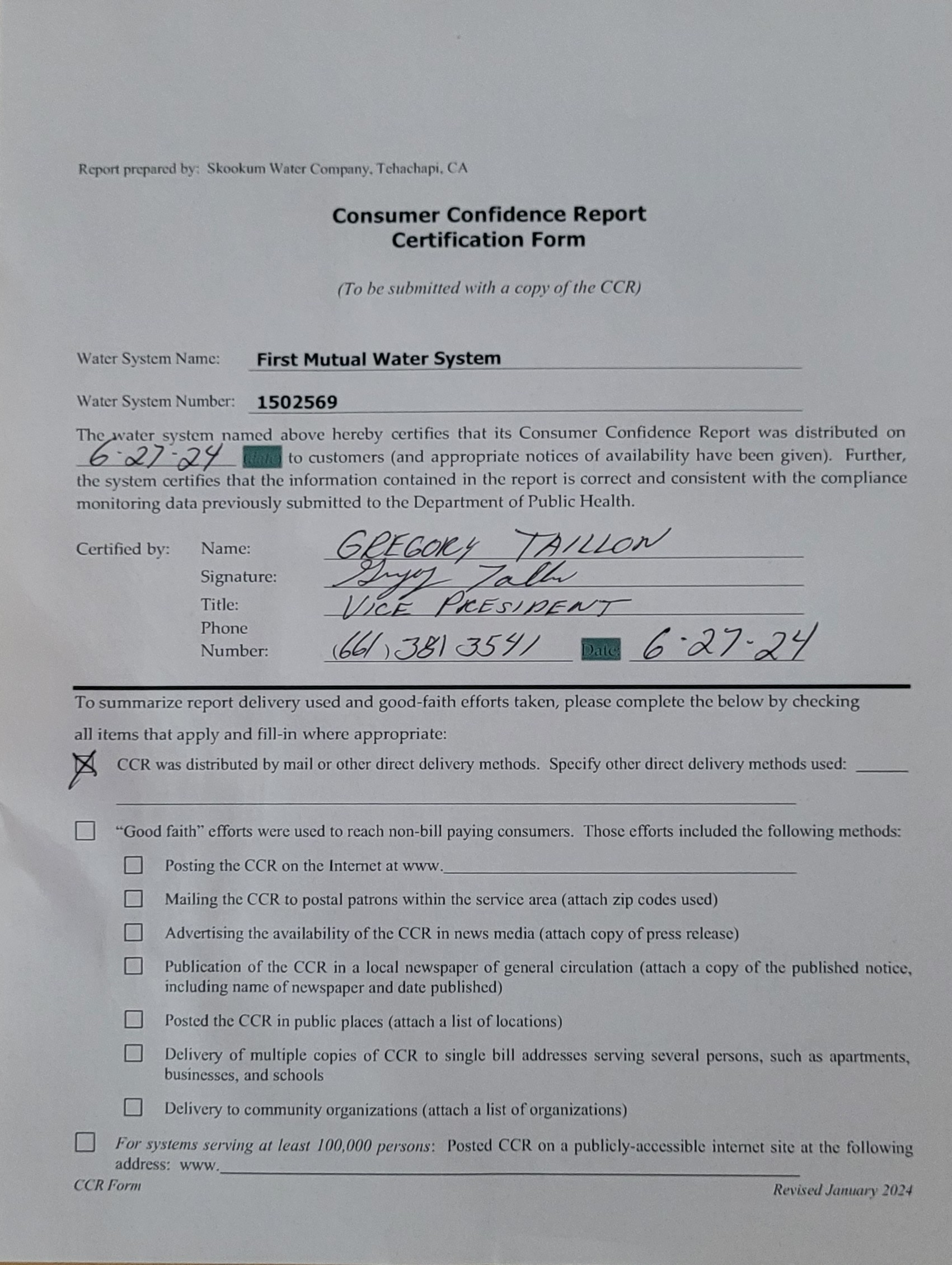 Water System Name : FIRST MUTUAL WATER SYSTEM State Type : C