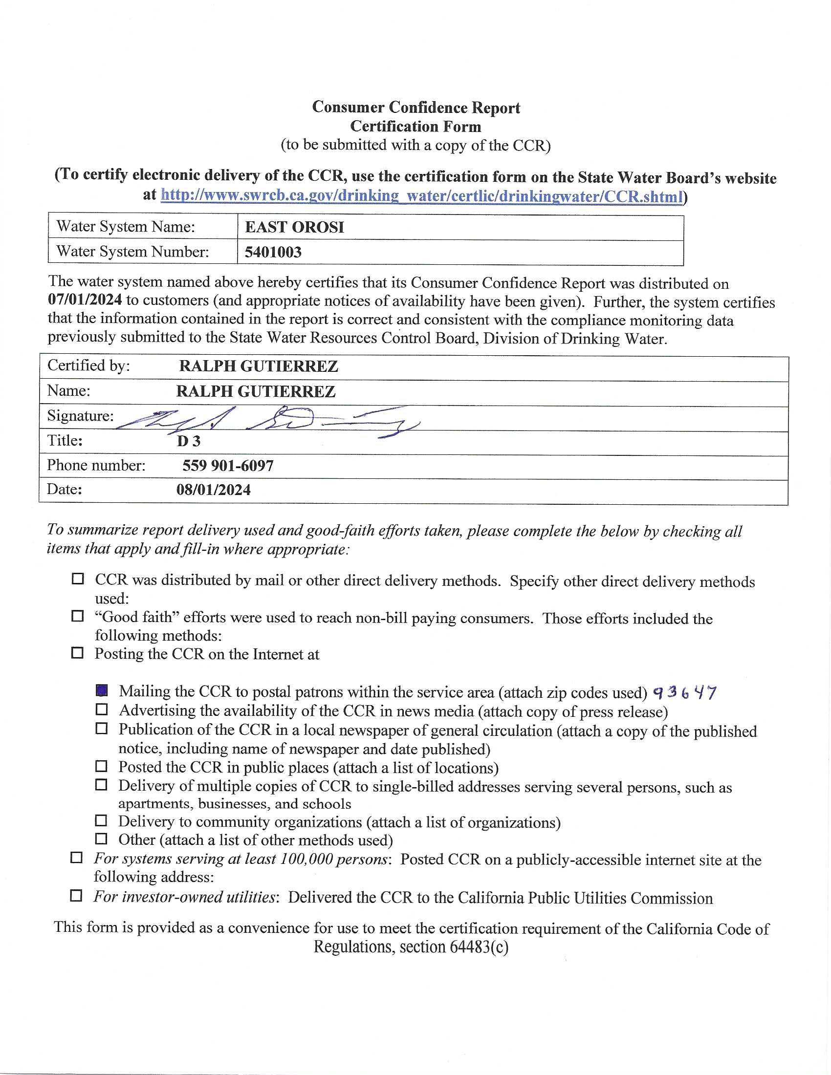 EAST OROSI COMMUNITY SERVICES DISTRICT |