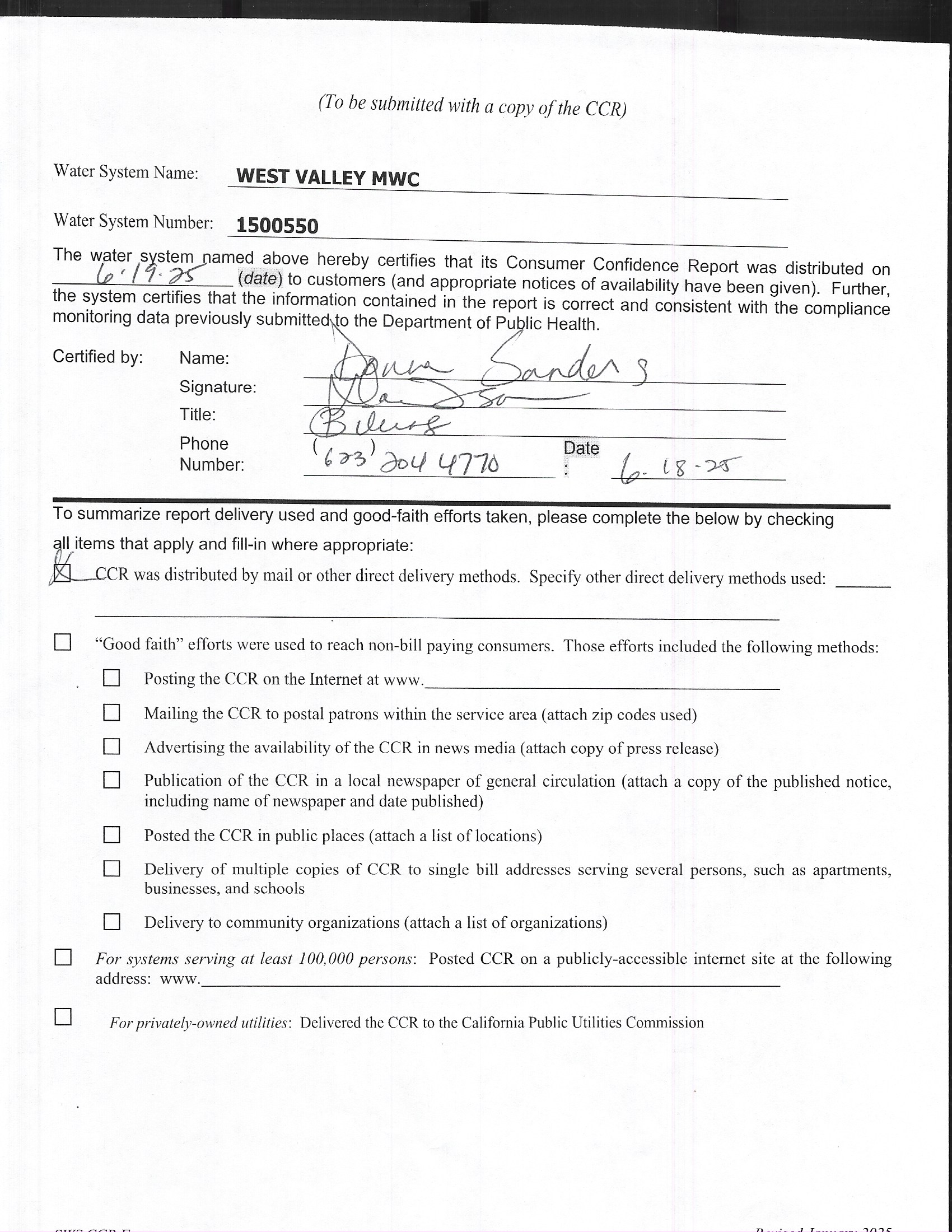 Water System Name : WEST VALLEY MUTUAL WATER COMPANY State Type : C