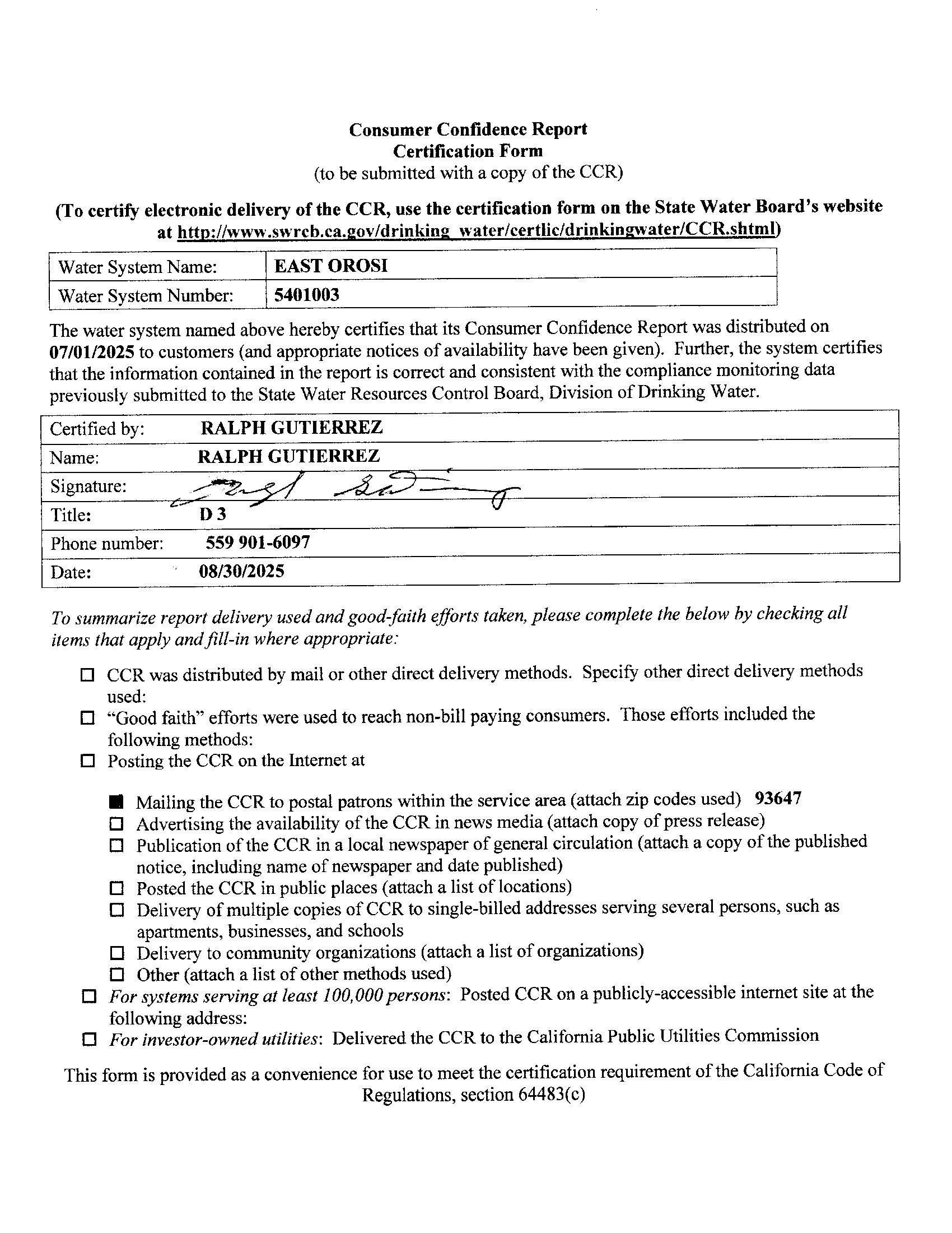 EAST OROSI COMMUNITY SERVICES DISTRICT |