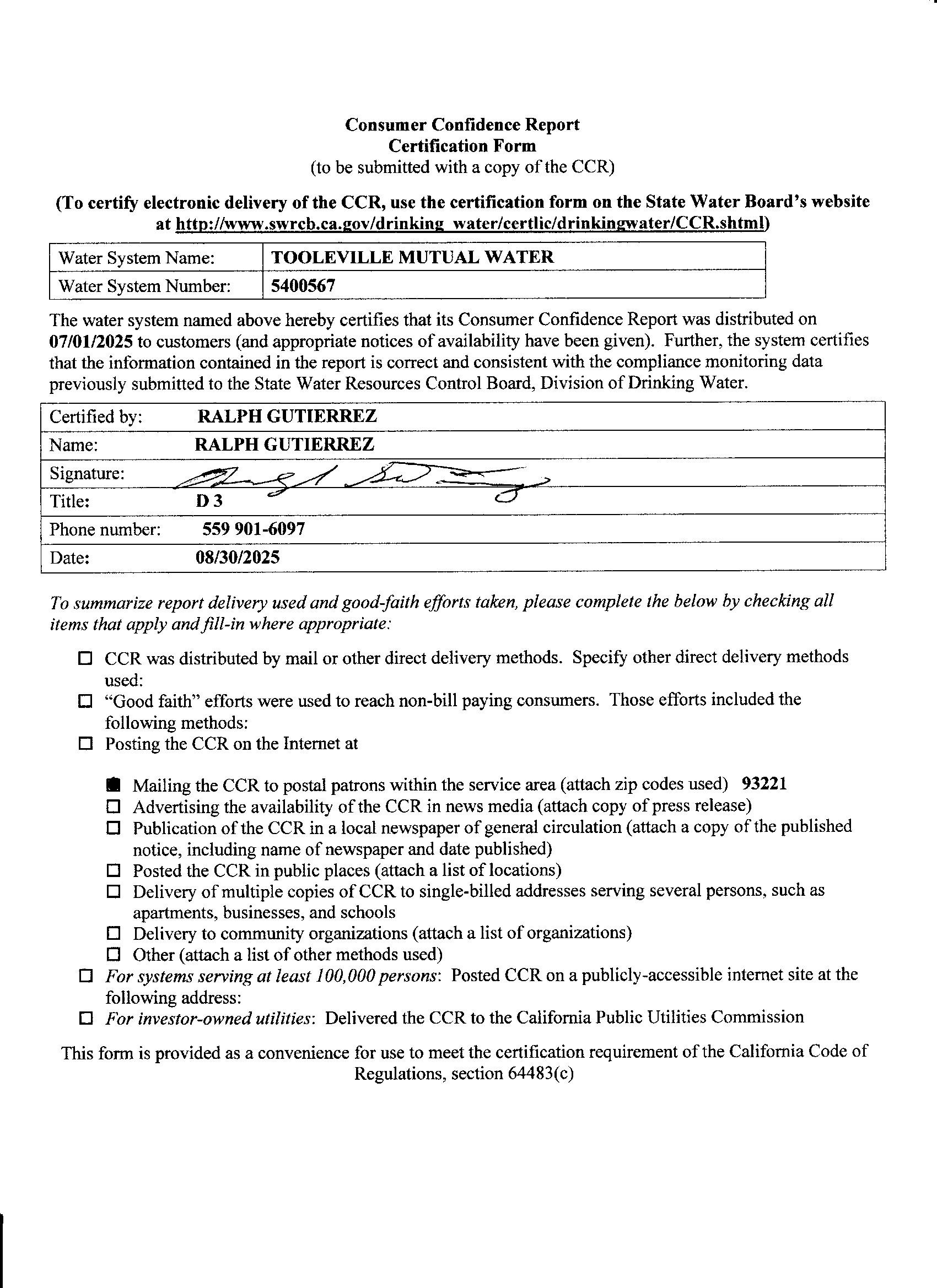 TOOLEVILLE MUTUAL NON PROFIT WATER ASSN |